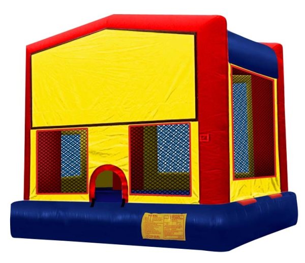 Basic (no theme) multi-color bounce house with safety net; commercial grade and designed for all ages. Max capacity 10 - 12 users depending on size. To add banner theme: 1. Select this item and add to Cart. 2. Select your banner theme and then add to Cart. We will then customize your inflatable by attaching banner theme to the inflatable that you selected. Inflatables will arrive without a banner theme if banner is not added to cart. Please note that Large banner themes will NOT fit on medium bounce houses but Medium banner themes WILL fit on large modular bounce houses & modular combos. Please note that banner theme may vary slightly than what is displayed on website.
