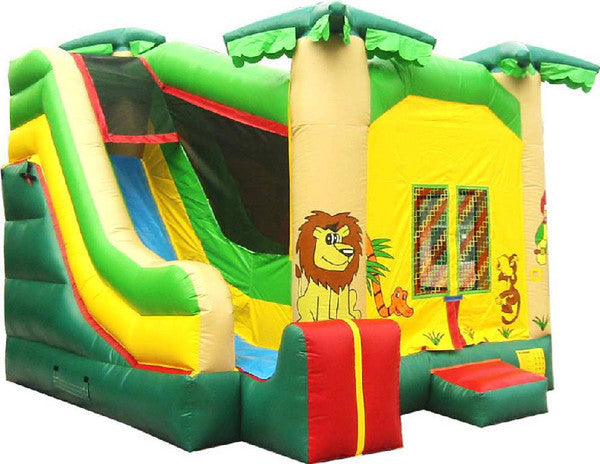 New for 2022, this 4 - 1 Jungle Combo is an excellent, compact and multi-functional unit for the smaller to mid-age kids (not recommended for bigger, older kids). This combo unit consists of a jump area, basketball hoop & slide!