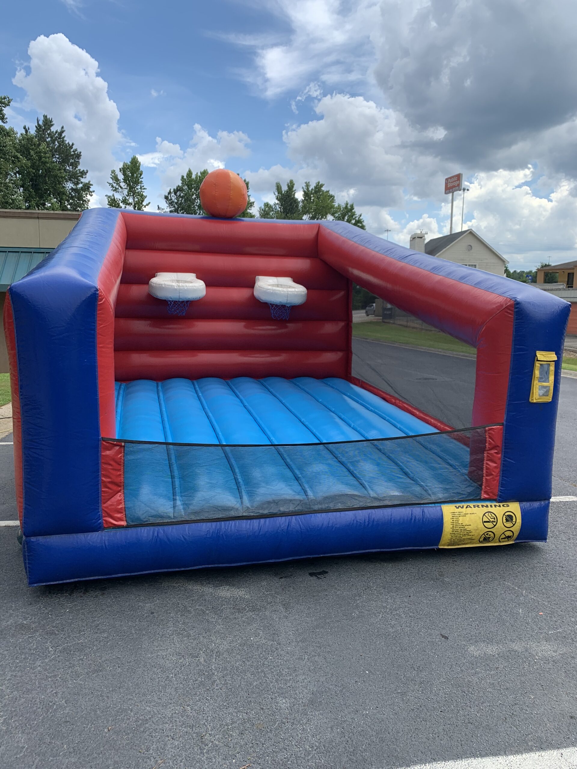A must have at festivals and carnivals this dual hoop basketball game will keep the "ballers" working on their range for hours. Comes with 4 mini-basketballs. NOTE: FOR FREE THROW SHOOTING ONLY - CANNOT BE JUMPED ON!